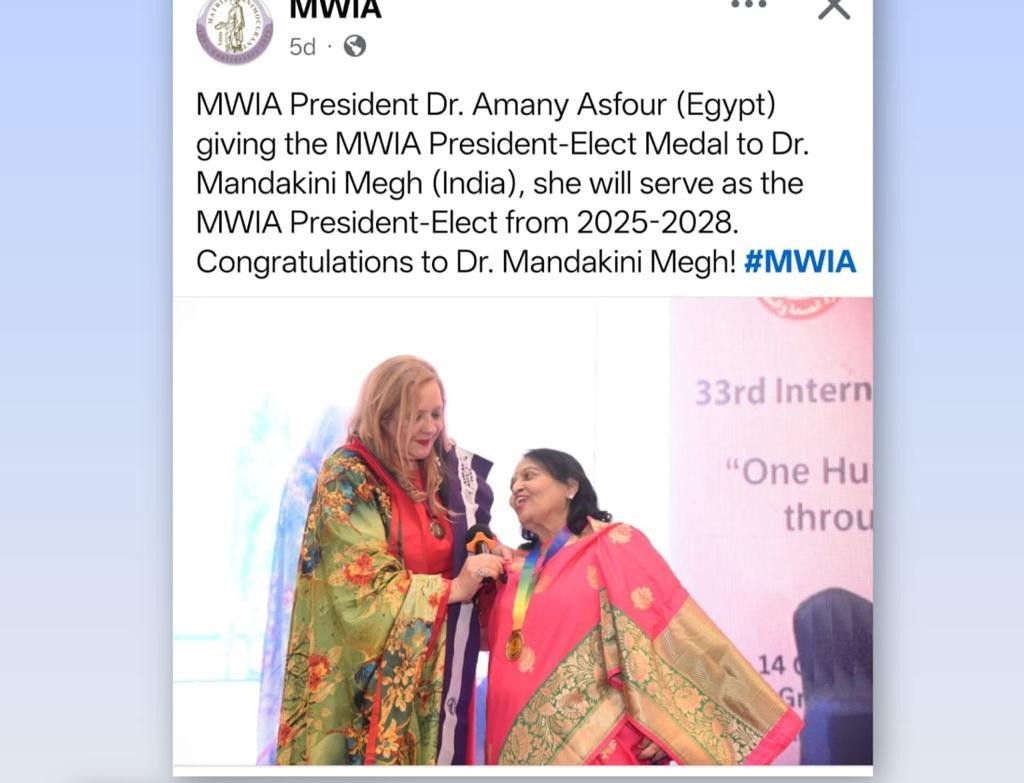 Dr. Mandakini Megh, has been elected President-Elect of the Medical Women’s International Association (MWIA), becoming the first Indian woman doctor to be elected to this global position.